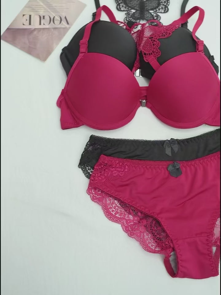 Product details of Bra and Panty Set Front Open Push Up Bra Butterfly Design